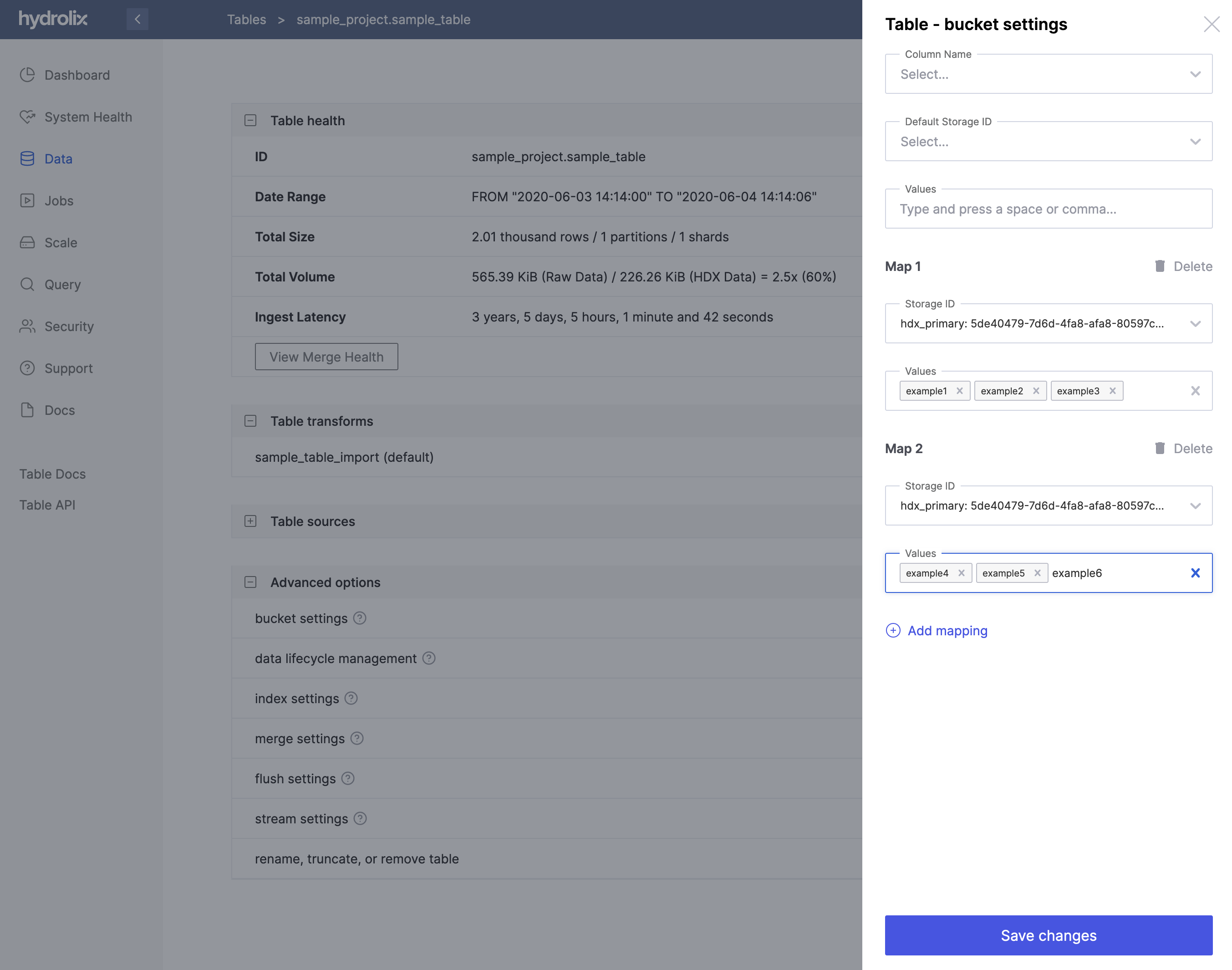 - Click Save changes to persist your storage mapping settings for the table.