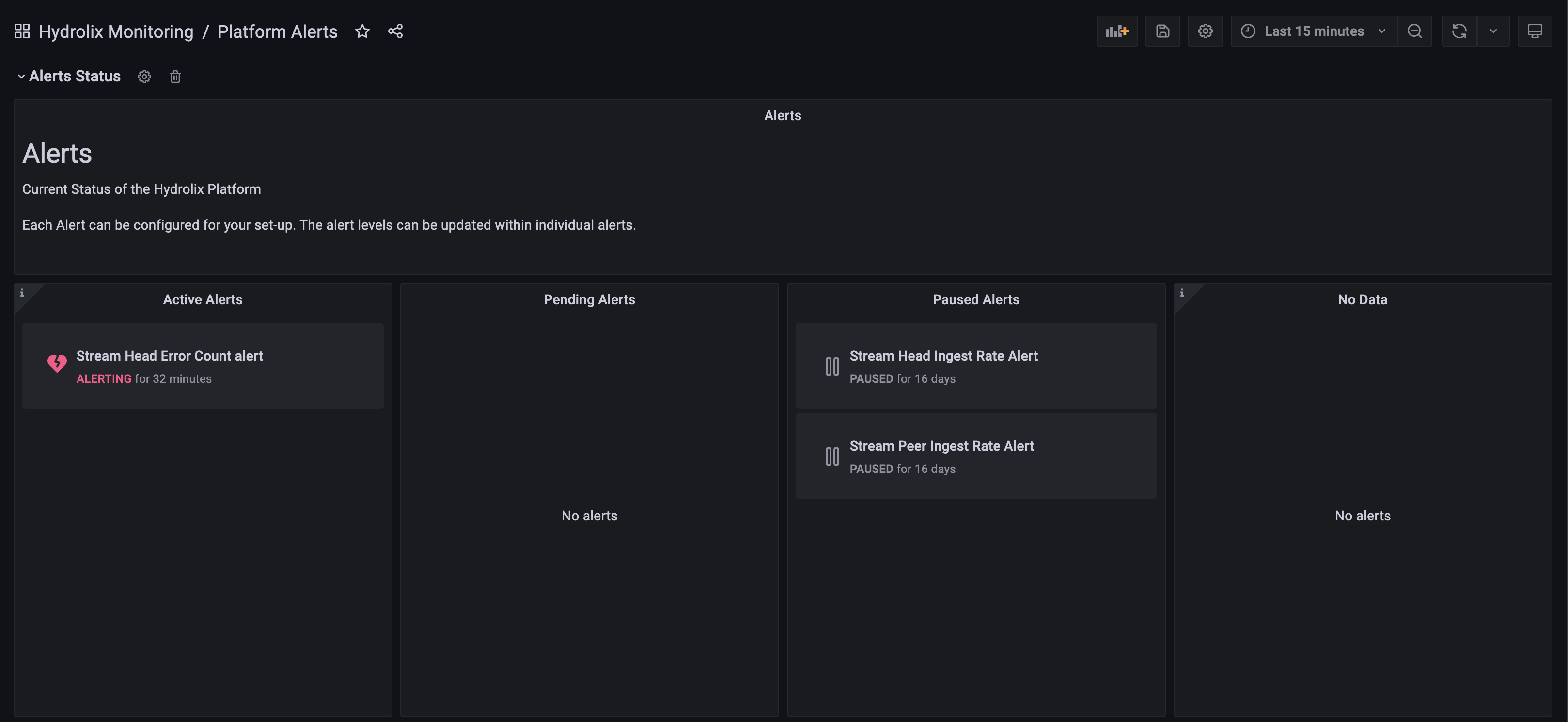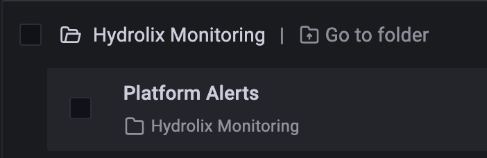 Navigate to the Hydrolix Monitoring folder. Open the Platform Alerts dashboard: